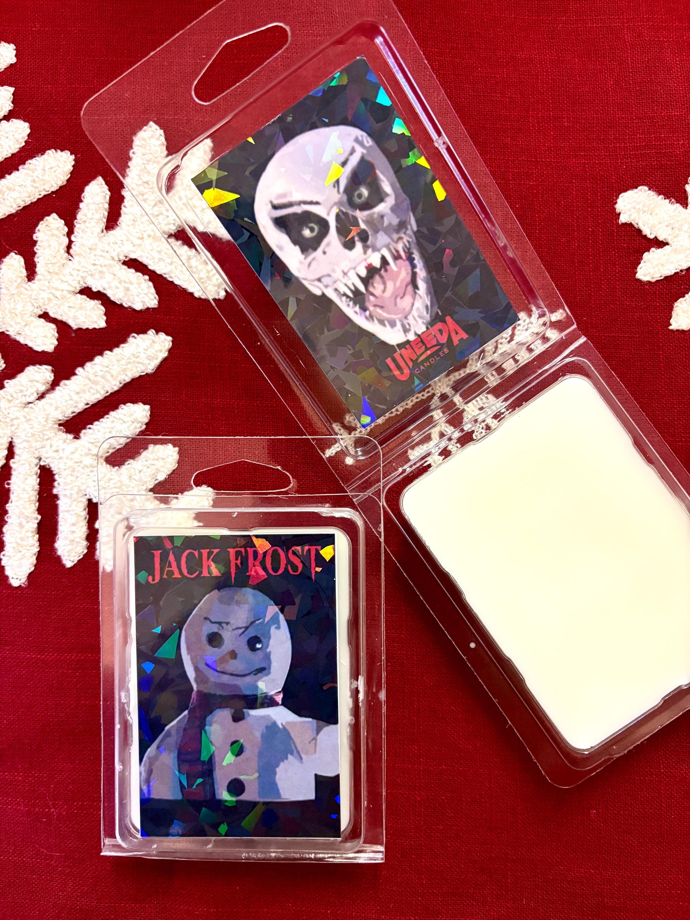 From our holiday collection, our Jack Frost inspired wax melt! Smells like ozone, cypress, and hints of sugar. Comes with a fun holographic finish.