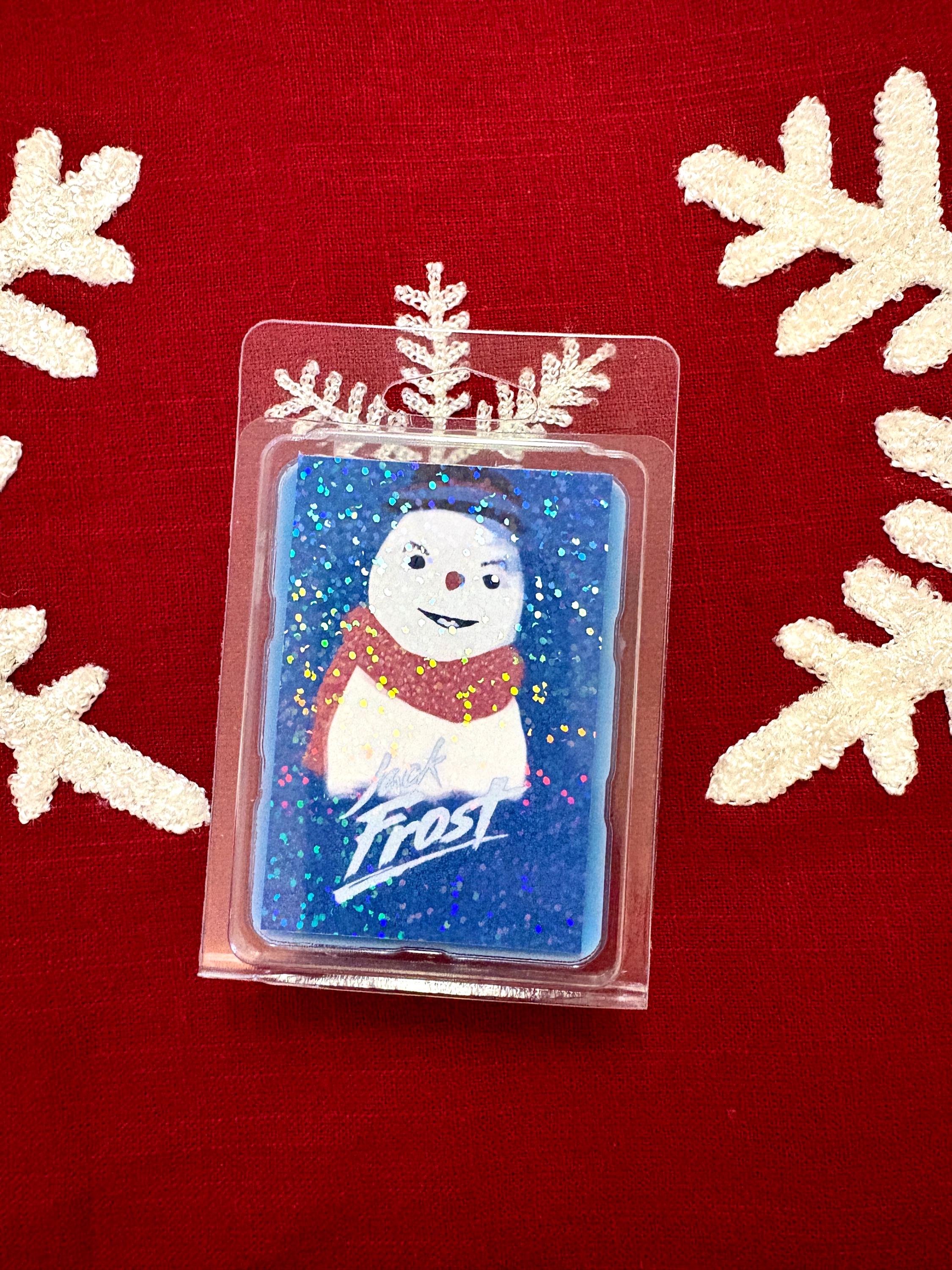 From our holiday collection, our Jack Frost inspired wax melt! Smells like cranberry and popcorn garland. Comes with a fun holographic finish.